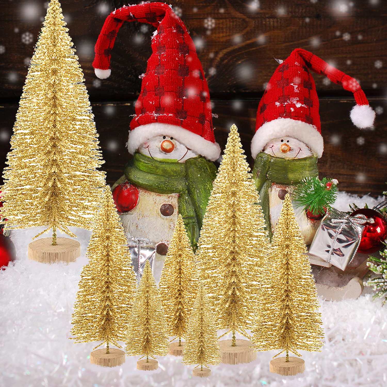 48 Pcs Mini Christmas Trees Bottle Brush Trees Tabletop Model Trees for Christmas Decoration DIY Room Decor Diorama Models (Gold)