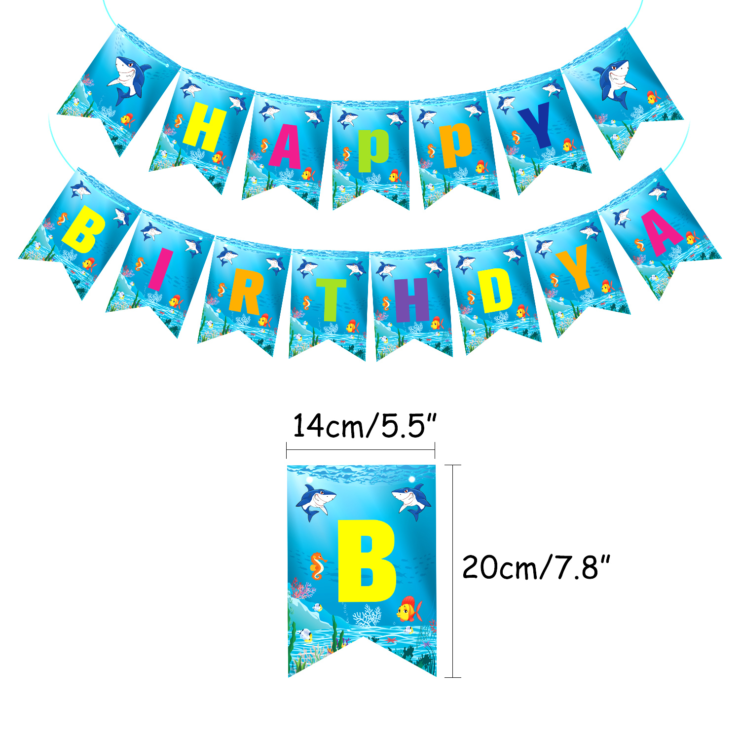 • Material: Shark birthday banner is made of high quality paper, eco-friendly, lightweight and reusable