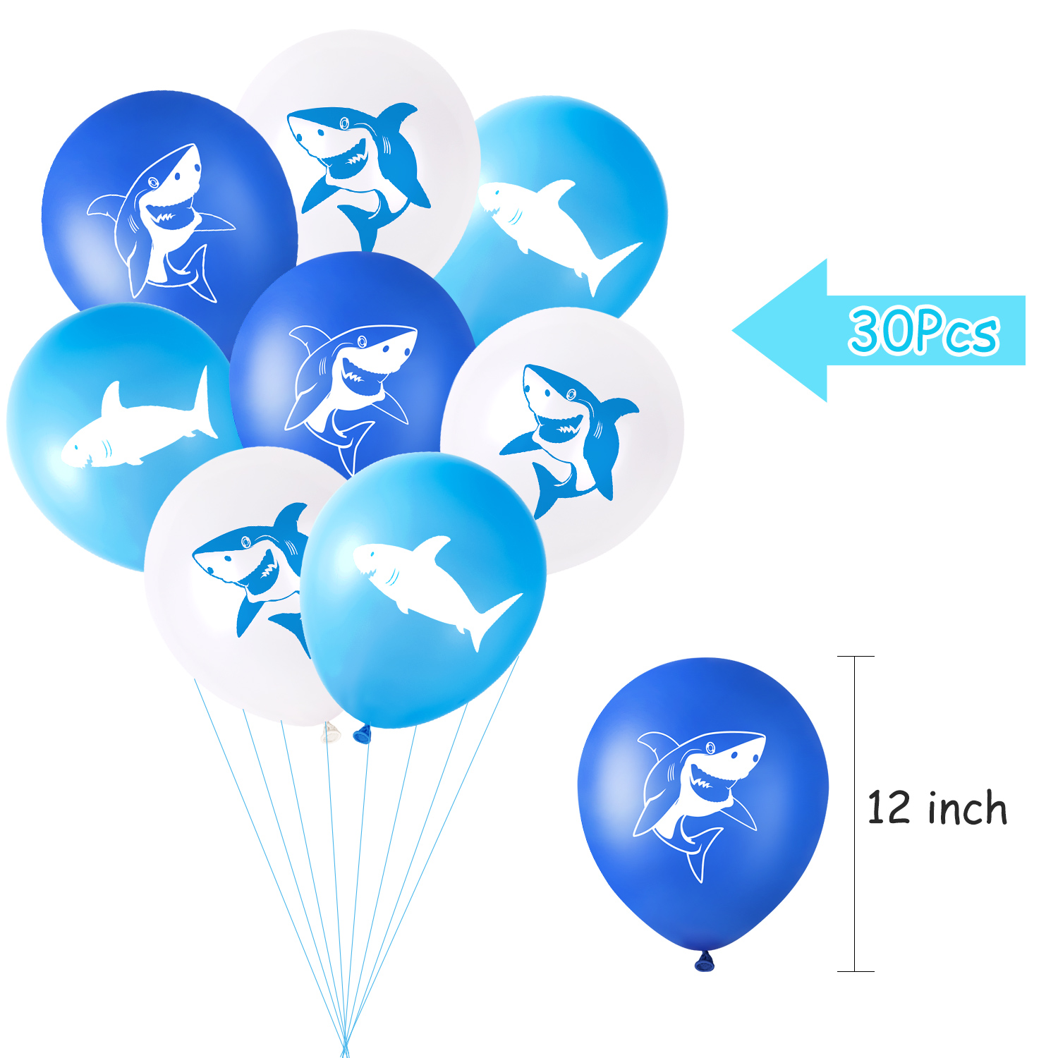 • Size: "HAPPY BIRTHDAY" is approx 14*20cm/5.5*7.8inches. 12 inch latex shark party balloons