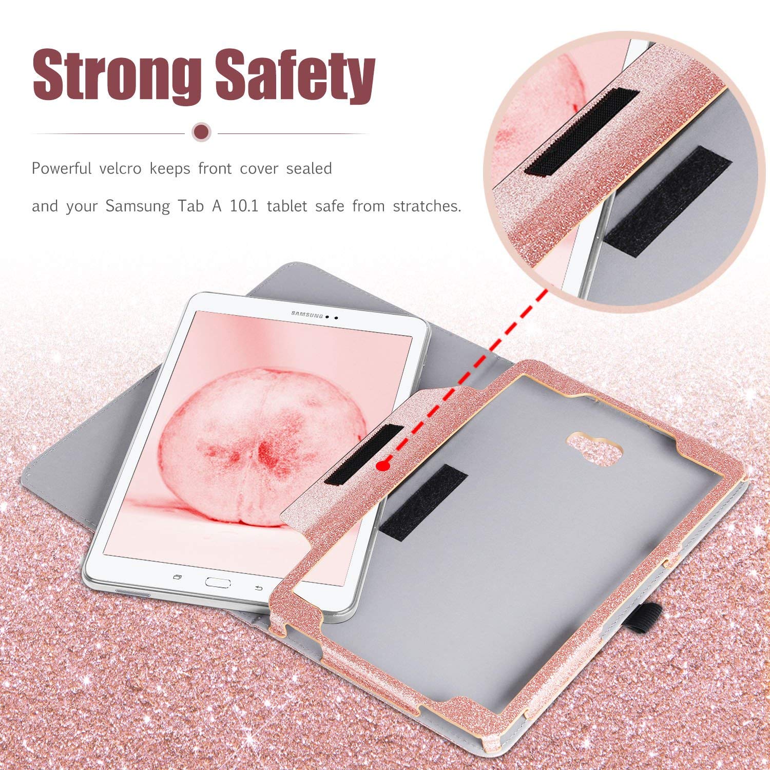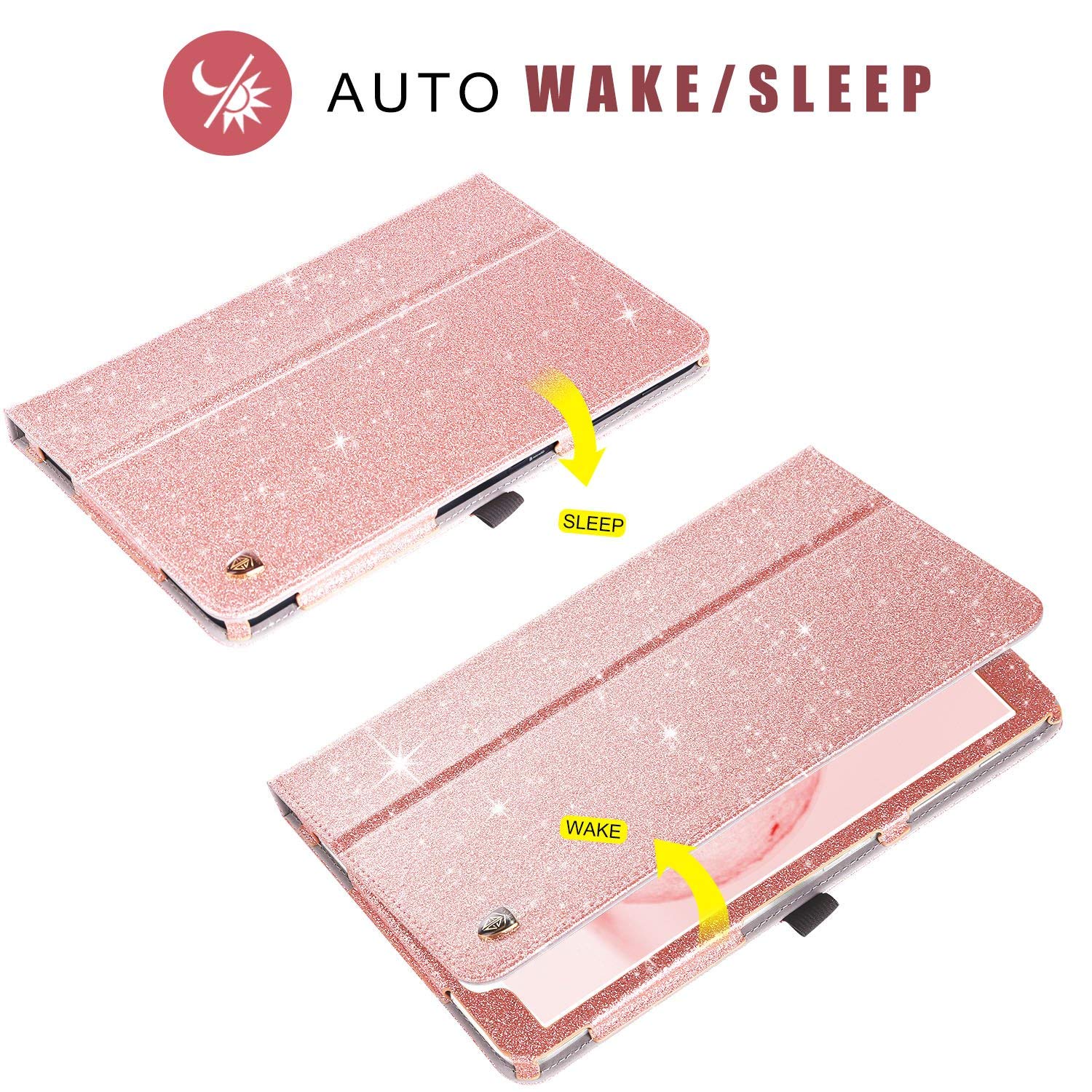 Slim Lightweight PU Leather Glitter Shiny Stand Smart Folio Cover with Auto Sleep/Wake Feature for Galaxy Tab A 10.1 Inch SM-T580 T585(No Pen Version),Rose Gold
