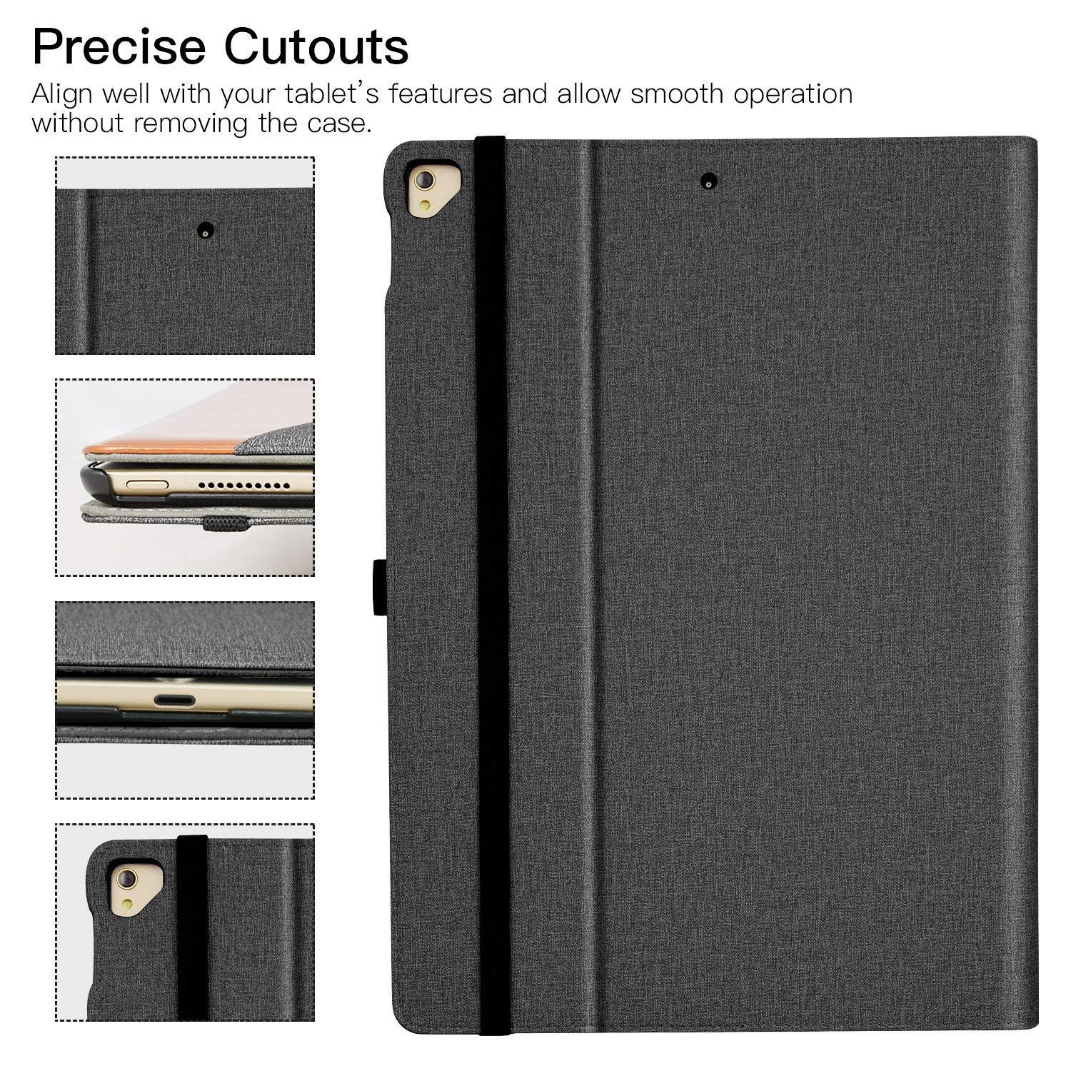 IPad Pro 12.9 Inch 2017/2015 Case, Premium Business Slim Folding Stand Folio Cover for New Apple Tablet with Auto Wake/Sleep and Document Card Slots, Multiple Viewing Angles, DenimBlack
