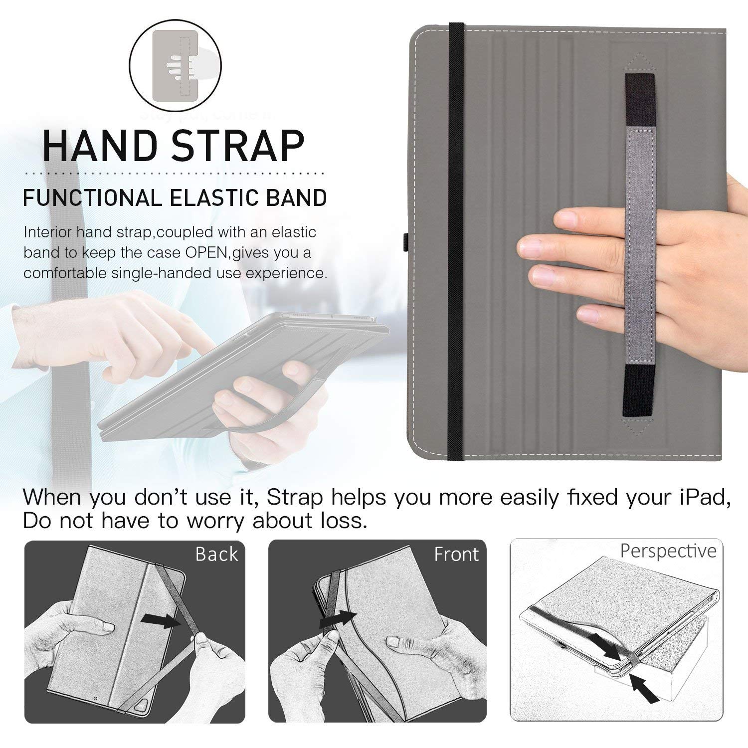• Premium Graded Material - Excellent workmanship with premium synthetic leather exterior and soft microfiber interior lining Multi - functional Features- Built in leather hand strap, pencil holder and organizer pocket. Auto Wake & Sleep Feature - Magnetic smart cover supports auto wake & sleep function. Multiple slots able to set up multiple horizontal stand angles for watching movie or typing. PLEASE NOTE - Exclusively designed for Apple iPad Pro 12.9 -inch (2017/2015 Release) precise cut-outs, will NOT FIT iPad Pro 12.9-inch 2018 Release and any other iPad models.