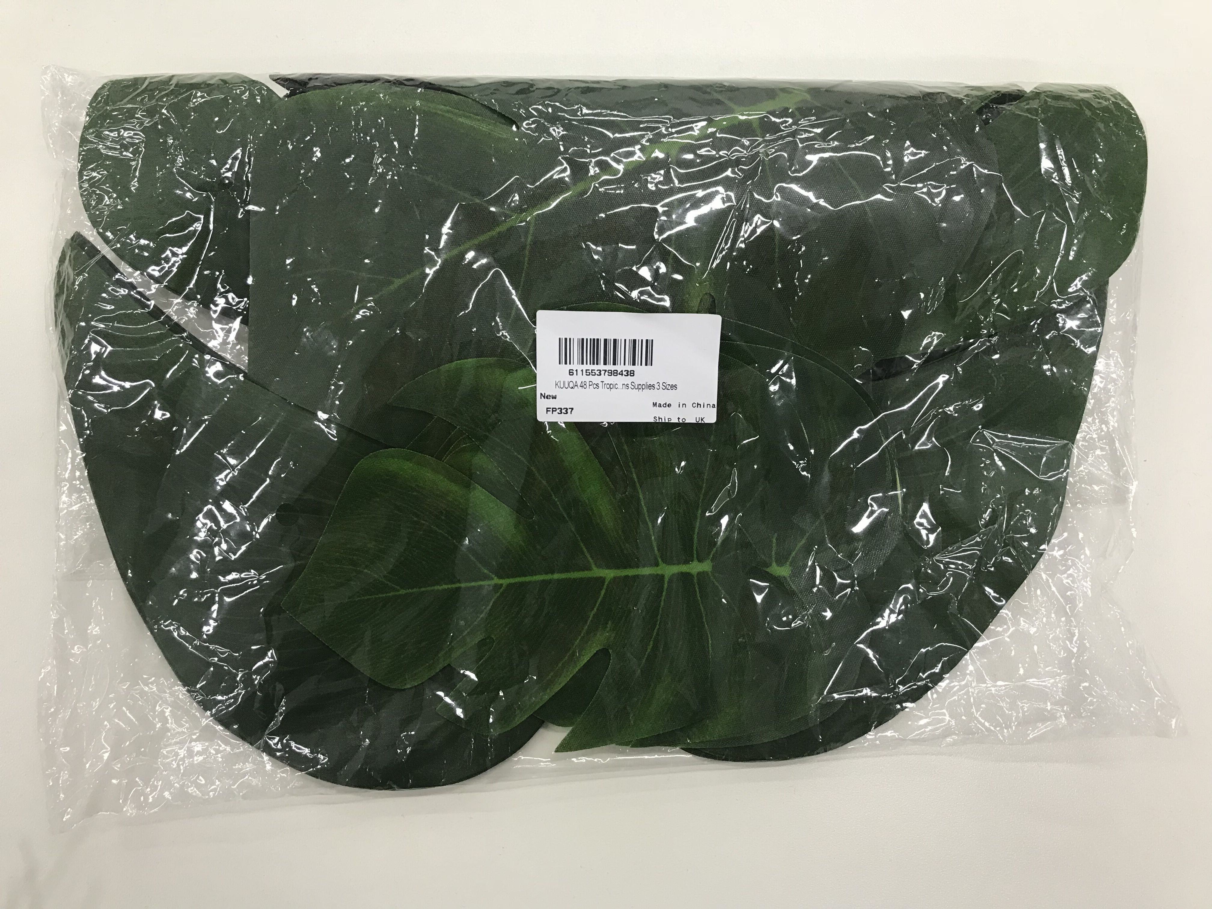 48pcs tropical plant leaves: Large - 14"/35cm - 12ct, Medium - 8"/20cm - 24ct, Small - 6"/15cm - 12ct
